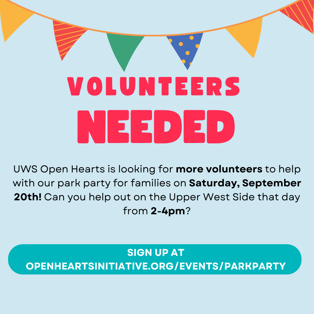 Can’t make this one? No worries—reach out to Caroline (caroline@openheartsinitiative.org) to make sure you’re on the Upper West Side chapter email list so you can stay in the loop!