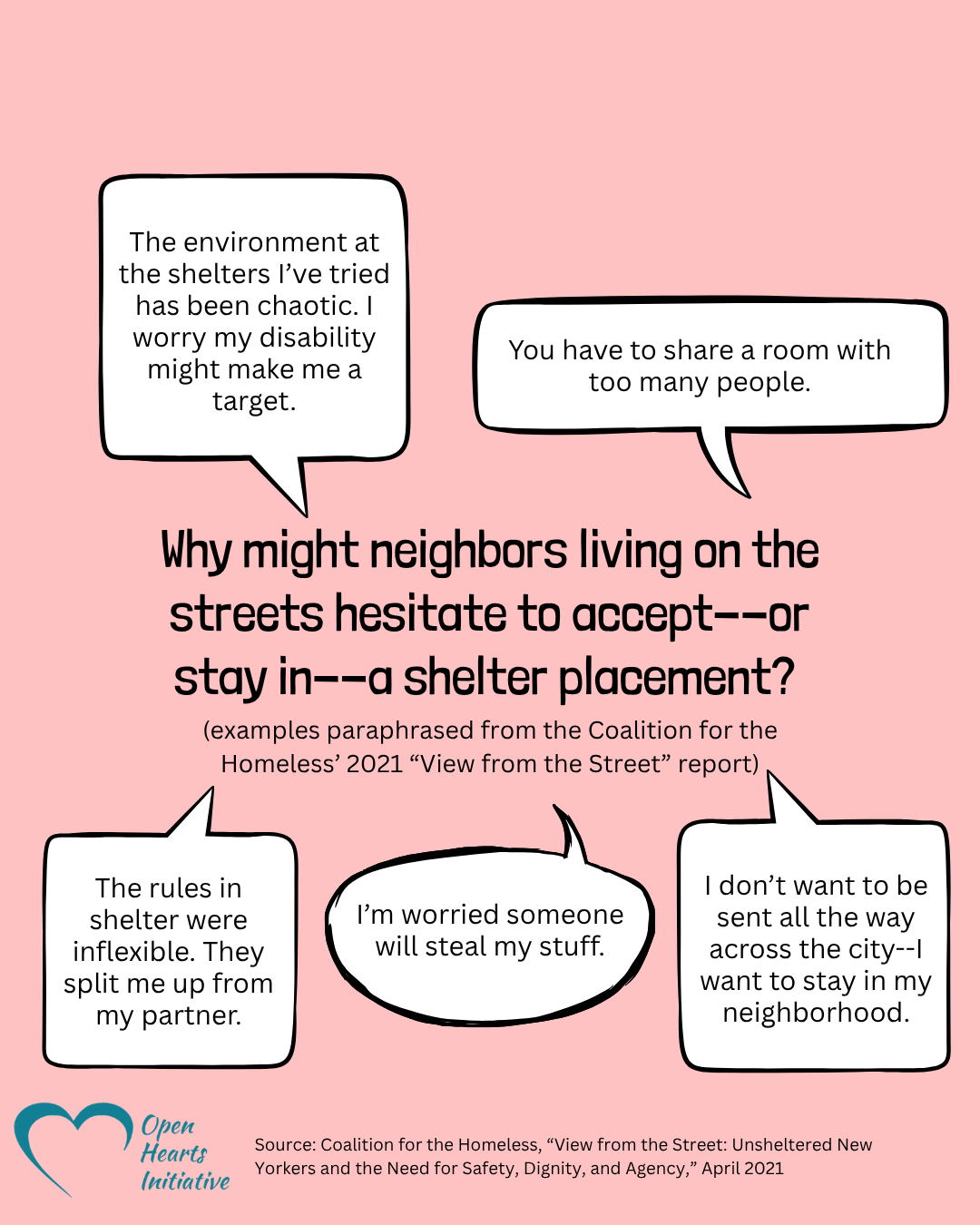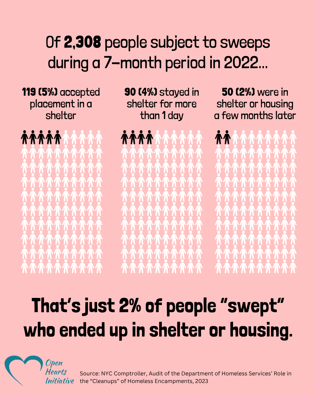 On March 11, encampment sweeps restarted in New York City. Sweeps are harmful: they lead to people losing their belongings (including items that help them stay warm in the cold) and destroy trust with outreach workers. They’re also ineffective: as the Safety Net Project wrote in a powerful post, just 5% of folks displaced by sweeps during the previous administration accepted shelter placement, and even fewer stayed in shelter for more than a few days. (Curious why some folks might hesitate to enter shelters? We’d recommend reading this 2021 report from the Coalition for the Homeless about the experiences of unsheltered New Yorkers.)
