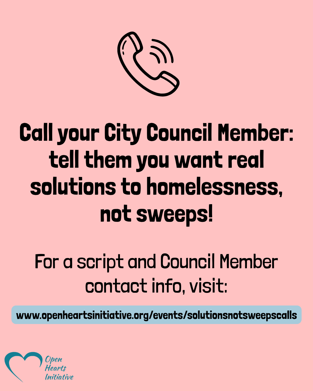 We’re calling our City Council Members to let them know that their constituents want real solutions to homelessness—not cruel and ineffective sweeps. Check out this guide for details on how to find who your Council Member is, how and when to call them, and what to say—and then make sure to fill out this form to let us know how the call went!